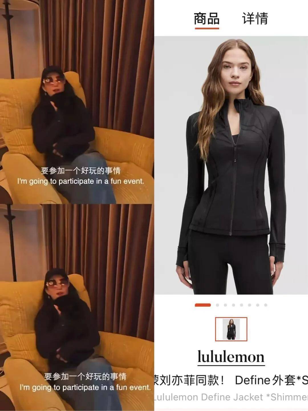 刘亦菲内搭的这件lululemon黑色外套她经常穿,这件衣服腰身处设计的很好,显得腰很细。
