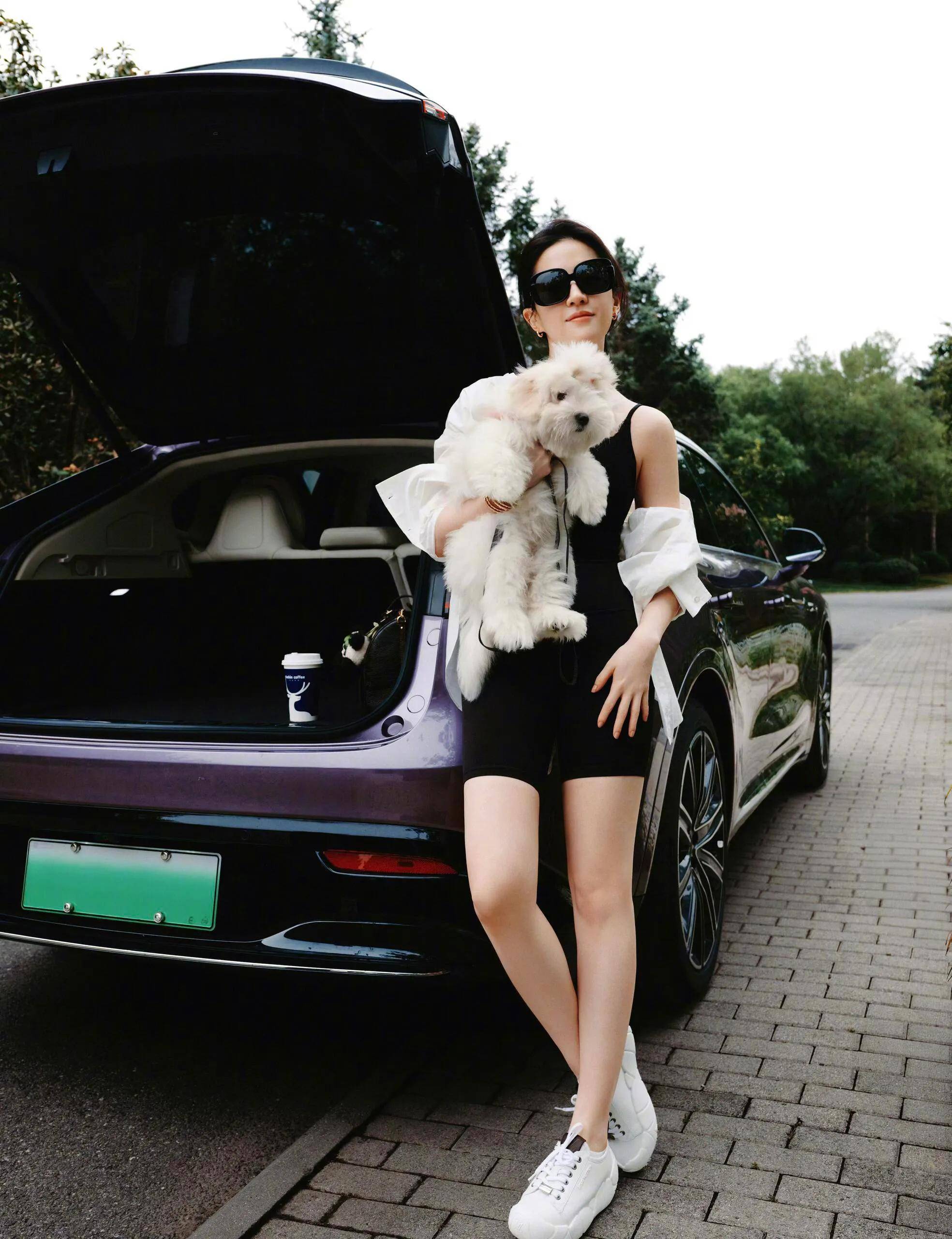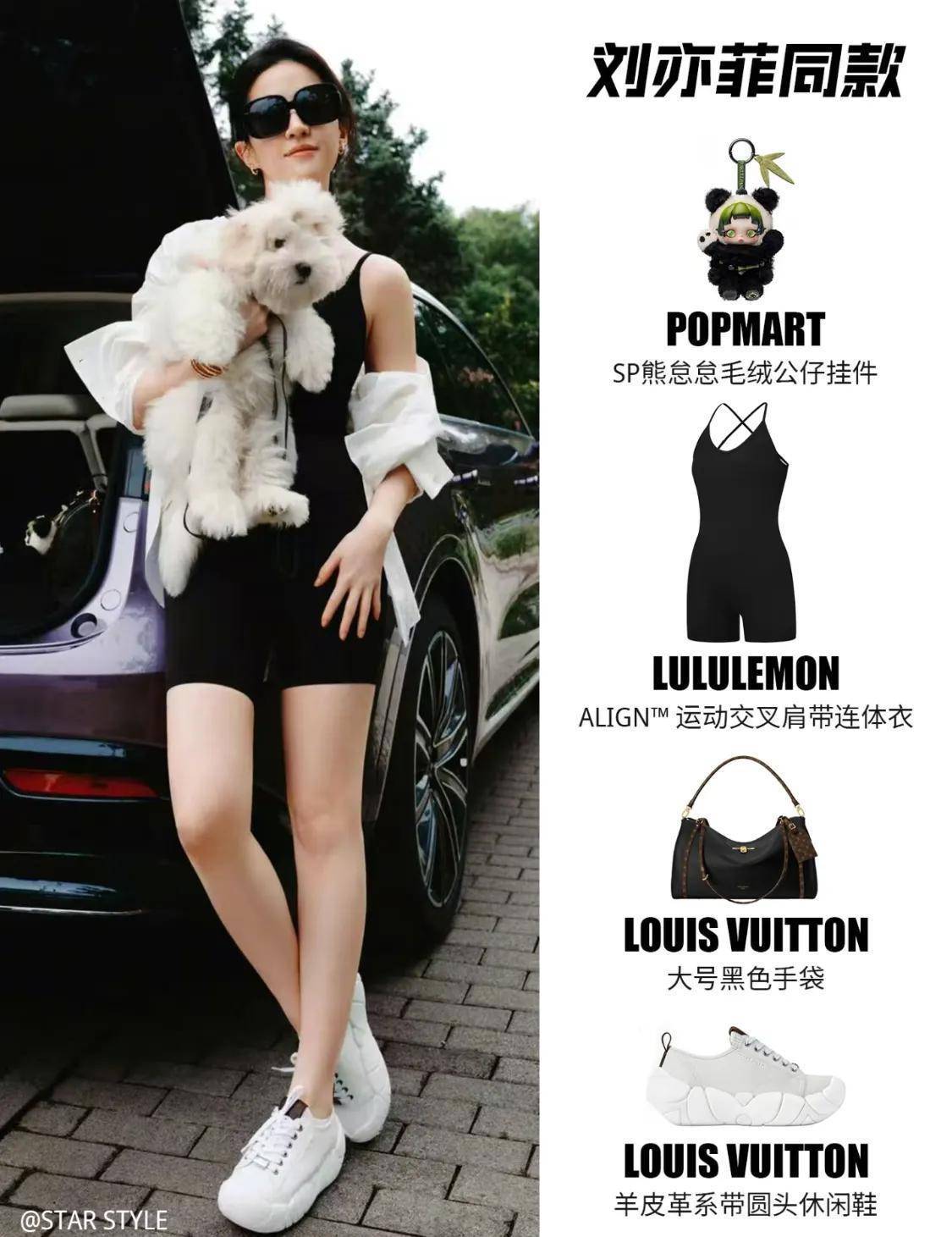 刘亦菲前几天晒的香车美人的照片里,她也穿了一套lululemon的黑色连体衣。她的身材匀称,骨肉均匀,虽然看着不瘦,但是她一看就是在坚持锻炼,美的很健康,刘亦菲坐在车后备箱里抱着狗狗的样子青春洋溢,美极了。