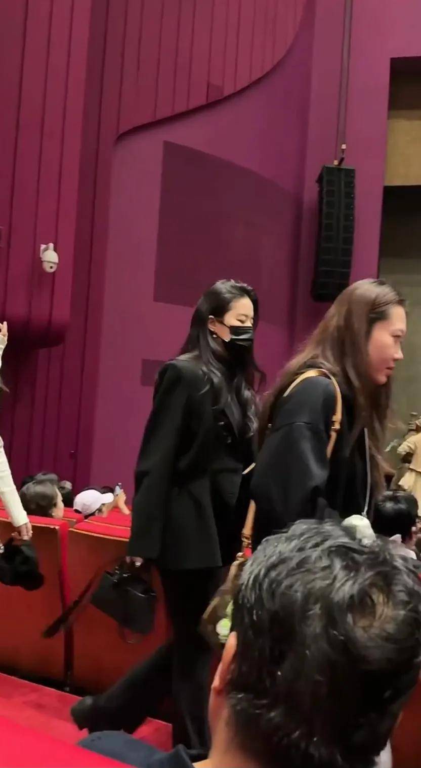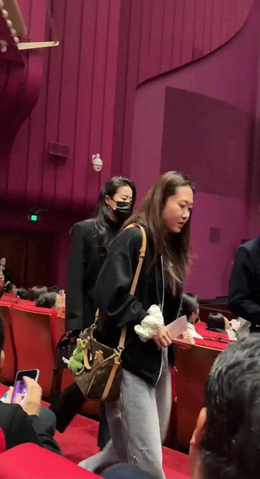 刘亦菲戴着黑色口罩低调的走进大剧院,身穿一件宽大的黑色西装,内搭了一件lululemon的黑色外套。刘亦菲虽然打扮的很低调,但是她人长得漂亮,一进场就被观众看到了,都在惊叹她长得好看。